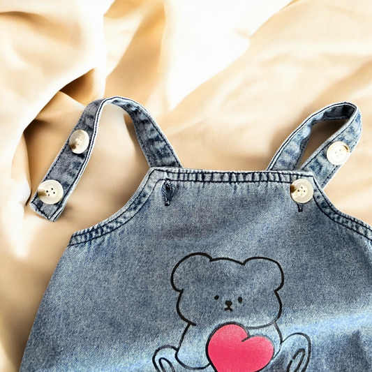Baby Denim Onesies - Comfortable Cartoon Bear Outfit | Stylish Baby Strap Onesies