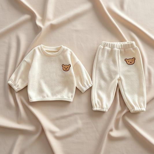 Baby Hoodies Set – Cartoon Bear Hoodie in Soft Cotton Waffle Fabric Outfit