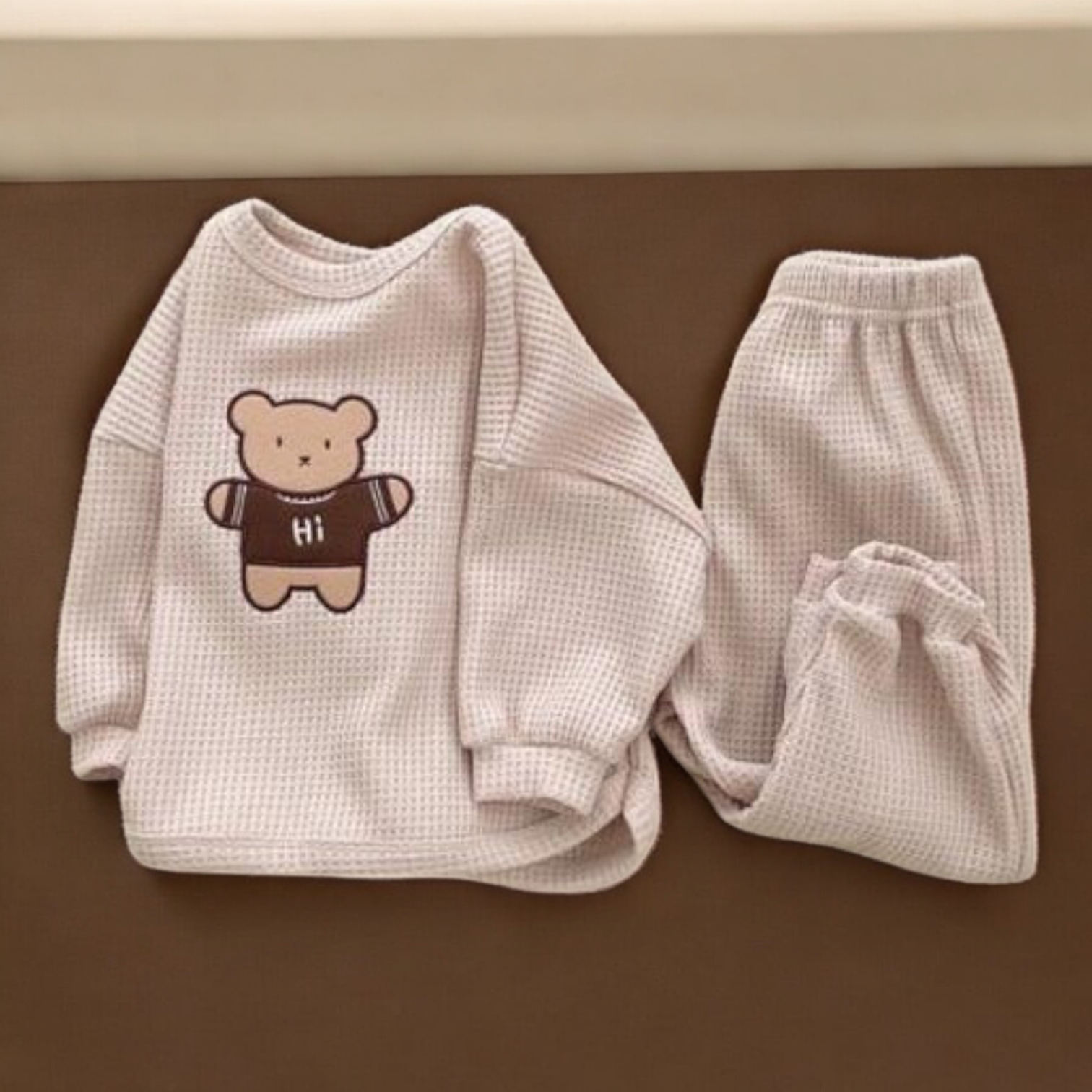 Baby Hoodies Set – Cartoon Bear Hoodie in Soft Cotton Waffle Fabric Outfit