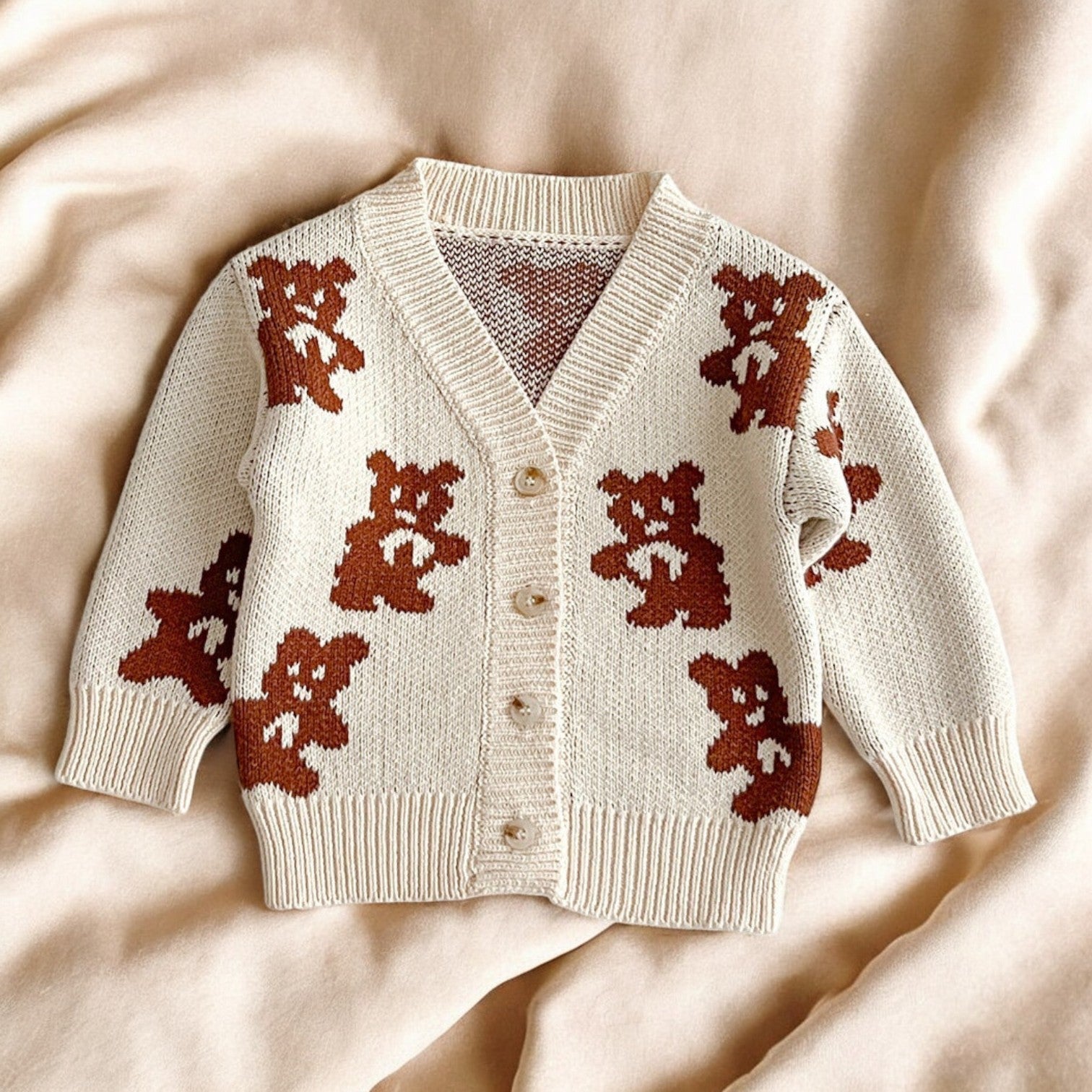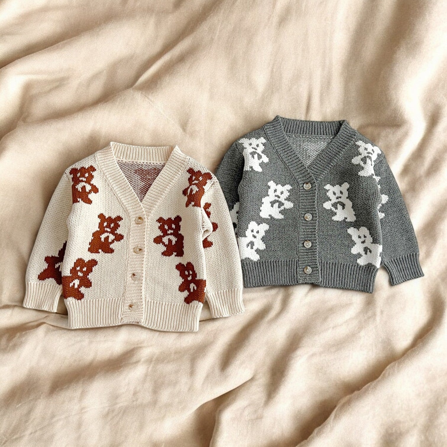 Baby Bear Cardigan - Soft Cotton Long Sleeve V-Neck Sweater For Unisex Baby Clothes