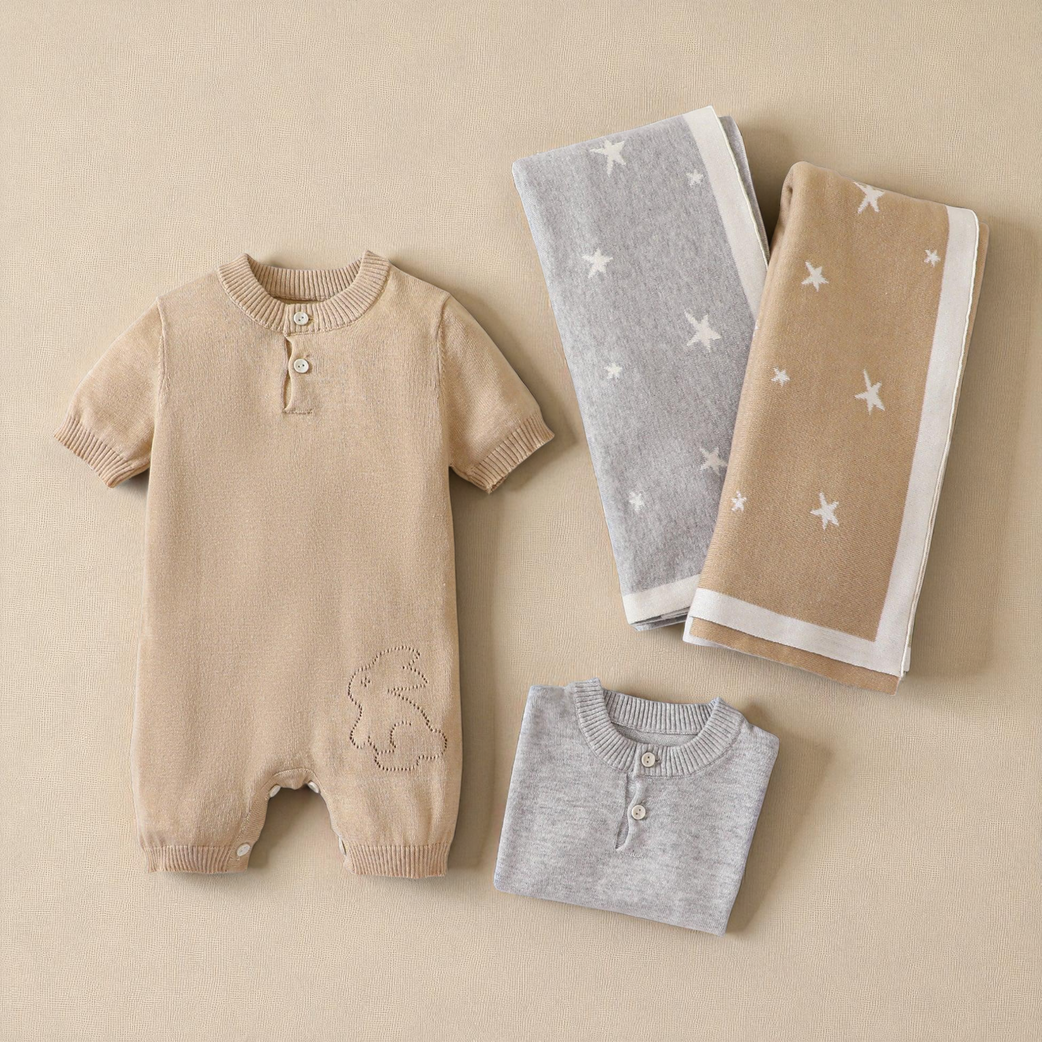 The baby blanket set features a newborn cozy blanket that provides gentle warmth without bulk, perfect for cooler days. The breathable baby jumpsuit promotes air circulation to regulate temperature, making it an ideal summer autumn baby set that keeps your infant cool and dry.