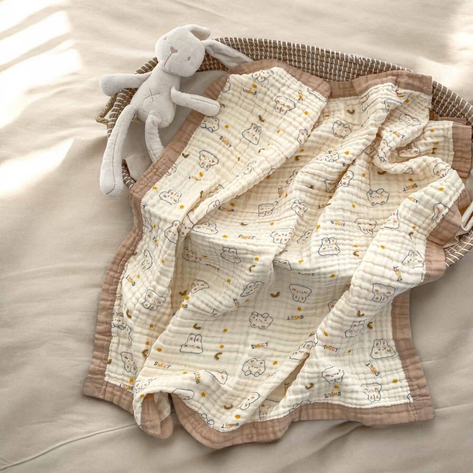 Cotton Muslin Bath Towel – Soft Absorbent Baby Bath Towel With Cartoon Print