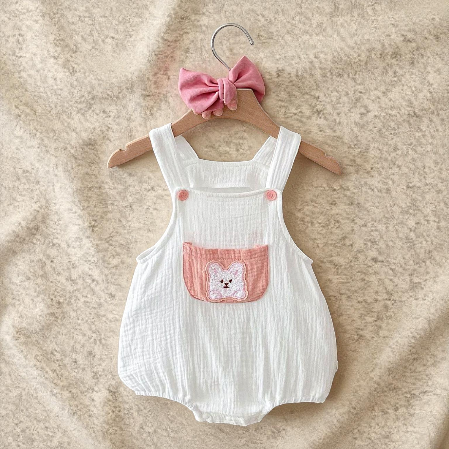 Baby Summer Onesie - Soft Cotton Fabric | Adjustable Baby Straps Romper With Cute Teddy Pattern